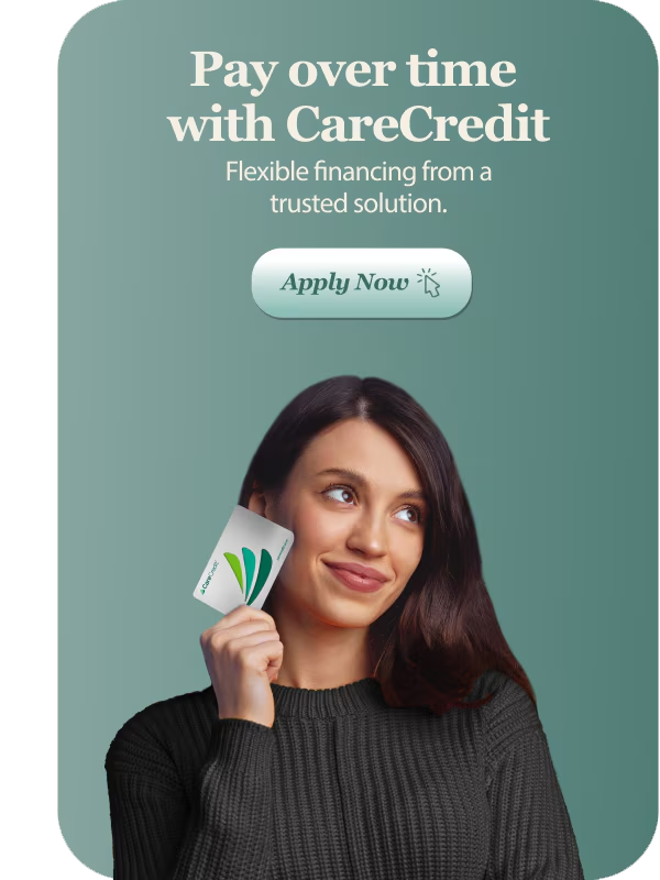 Help fit the care you want or need into your budget with the CareCredit health and wellness credit card. It offers flexible financing options that allow you to pay over time.*